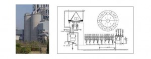 CP均化庫是我廠引進德國BMH公司的一種新型生料均化庫,其特點電耗低、均化效果好。CP均化庫的均化機理是庫頂生料通過8條斜槽均勻布料,不同時期的生料在庫內呈橫向分布,庫底充氣系統(tǒng)設計更符合生料充氣后的流動性,呈放射狀斜向分布,環(huán)形區(qū)一般分8個區(qū),每隔5分鐘輪流充氣,充氣區(qū)生料因松動及氣流的引導卸入中心區(qū),庫內不同層的生料豎向切割下料實現(xiàn)生料的均化,不同時間的生料進入中心區(qū)后再進行氣體強烈混合均化,從而達到理想的均化效果。